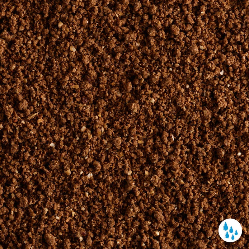 Chapelure, maïs, biscuit, PV1 (blé, mélasse), tourteaux de chenevis moulu(10%).