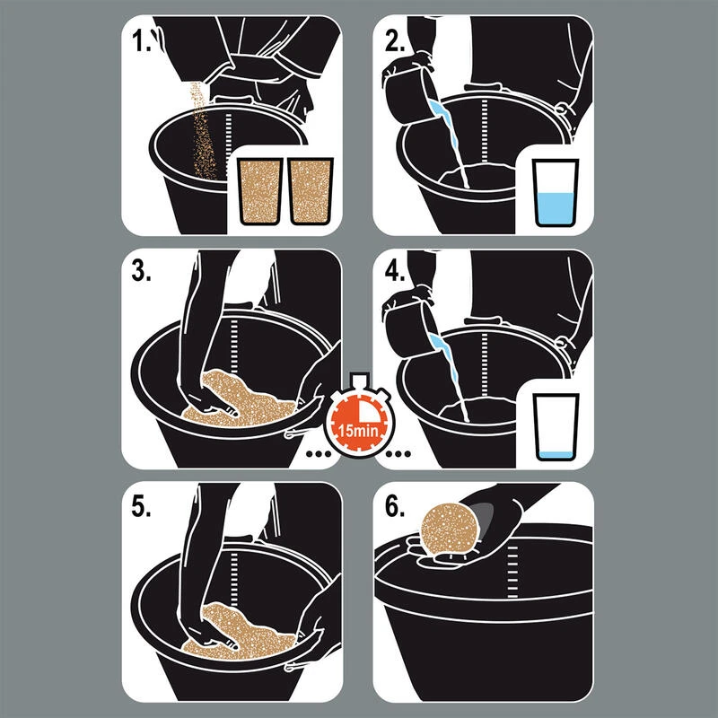On laisse ensuite l’amorce se reposer pendant 15min, puis on vide le reste d’eau pour arriver à un mouillage qui vous permettra de faire des boules.