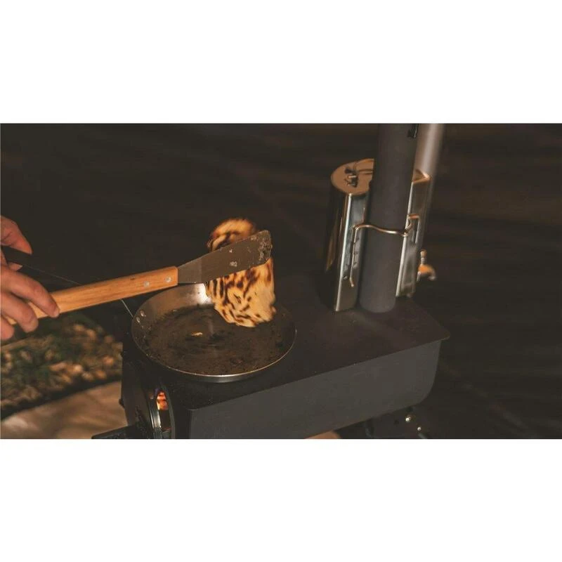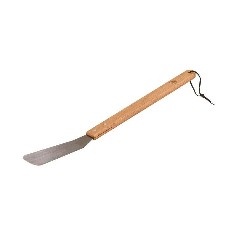 Spatule pratique avec un look rustique, parfait pour cuisiner sur un feu de camp grâce à sa longue poignée. Livré avec une boucle en cuir pour le suspendre.